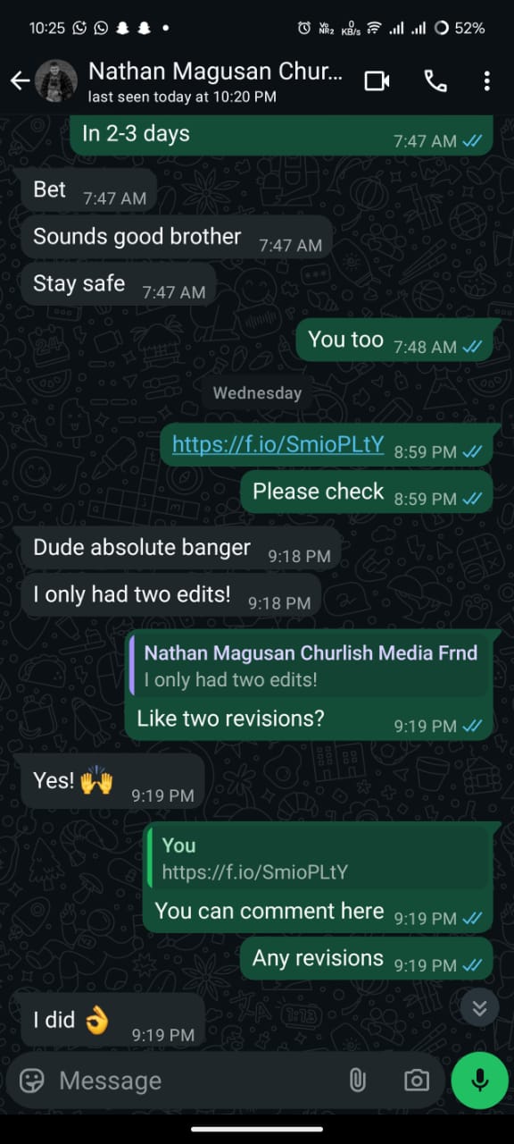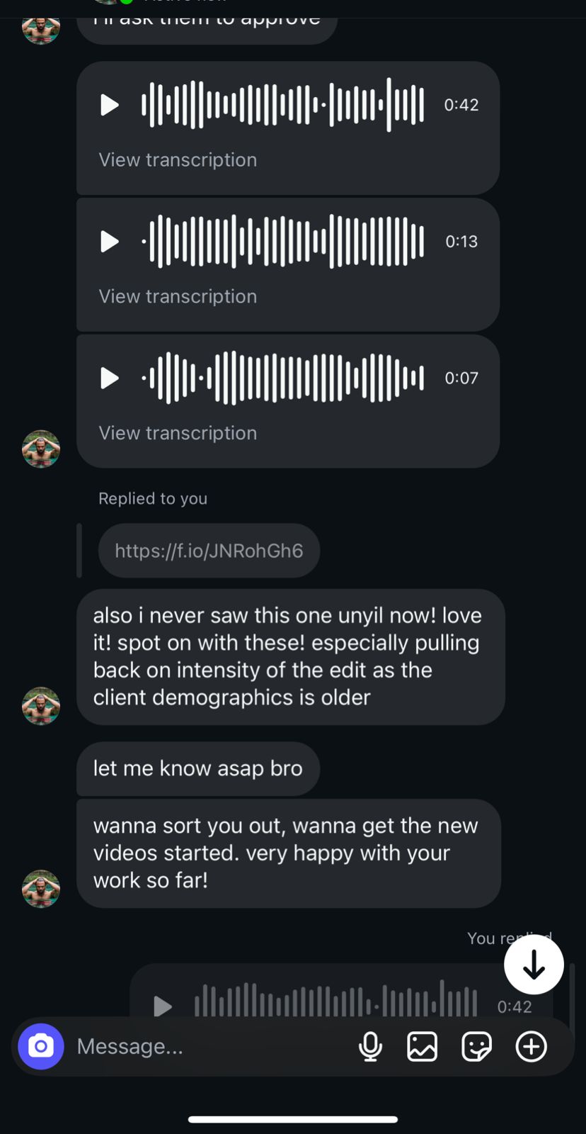 The edits always come out clean and on point. Fast turnaround, great communication, and exactly what I envisioned